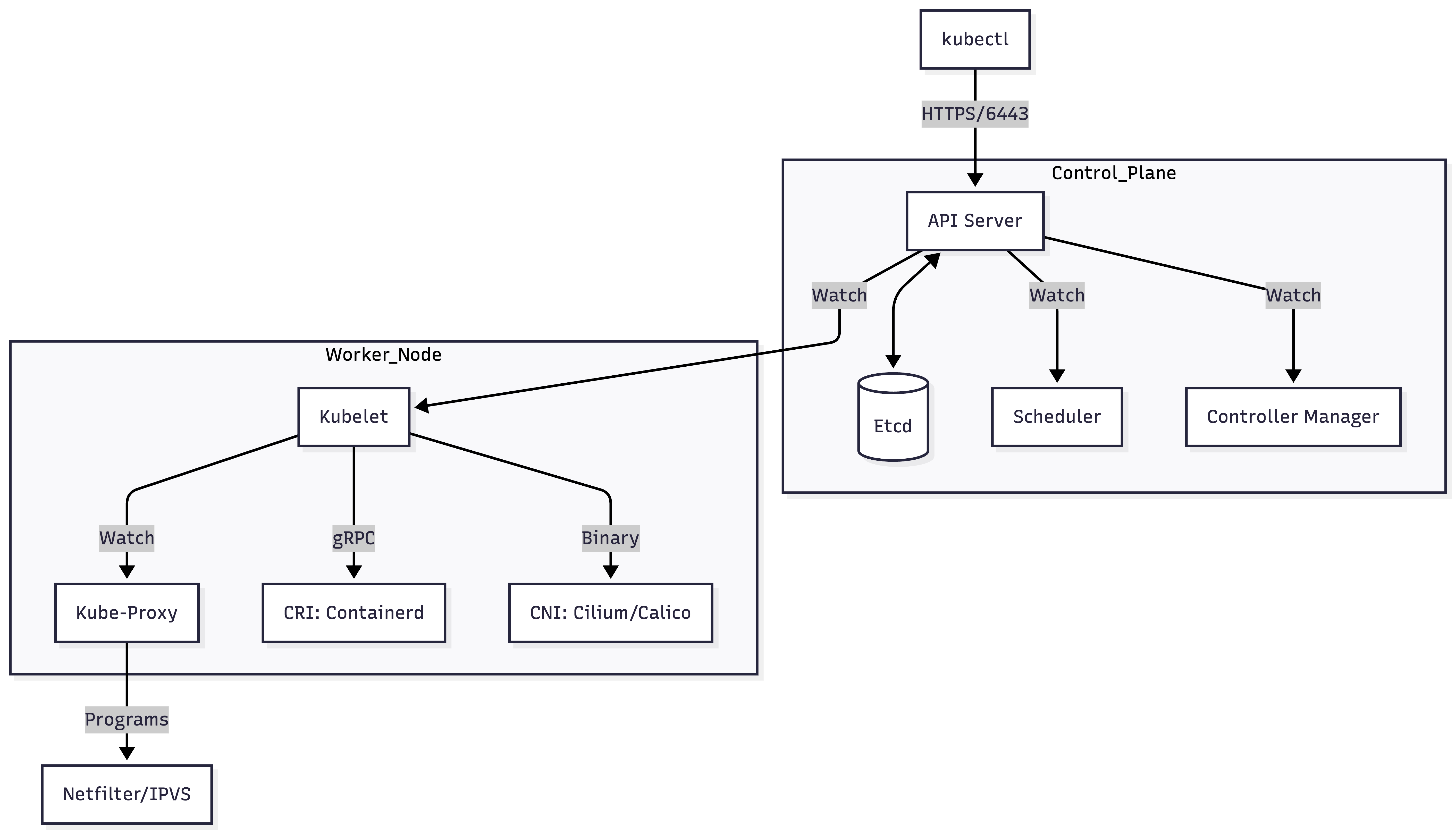 The "Watch" Mechanism: Instead of polling, components (Kubelet, Scheduler) establish a long-lived HTTP/2 stream called a Watch. When etcd updates, the API Server pushes the event to the watcher.