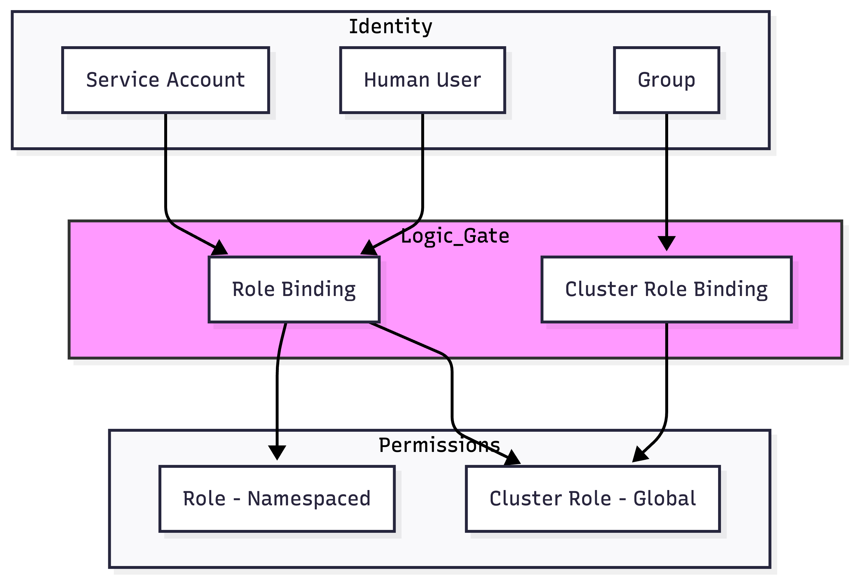 In Kubernetes, every request to the API Server must be authenticated (Identity) and then authorized (Permissions). This document details the Service Account (the identity for non-human entities) and RBAC (the framework for governing what those identities can do).